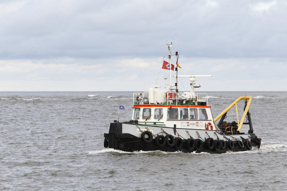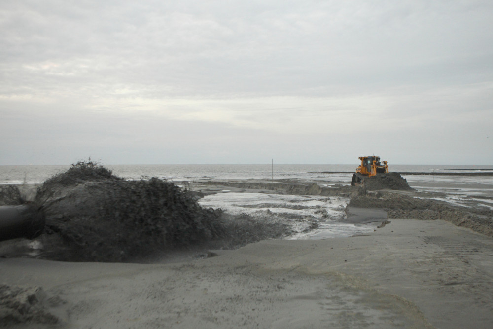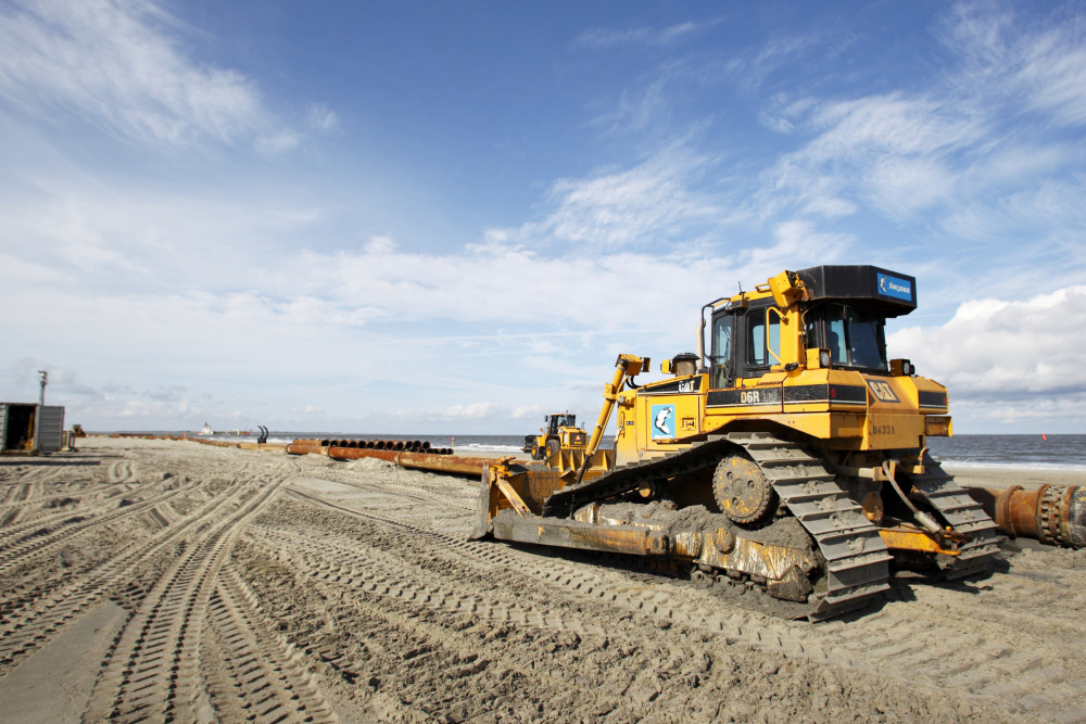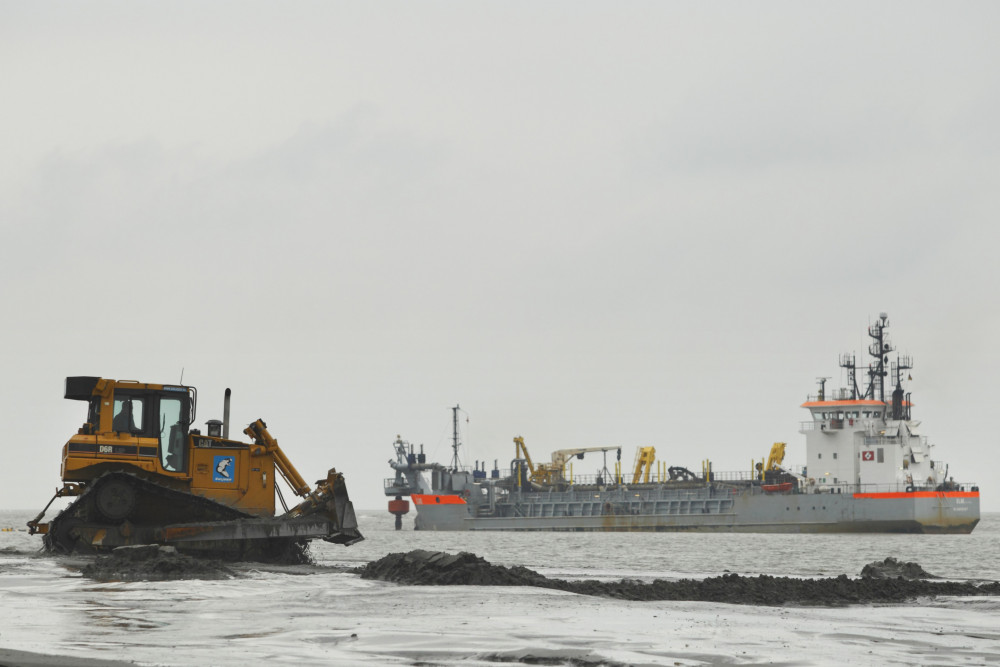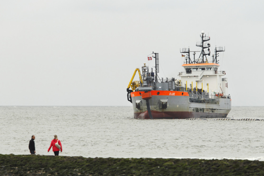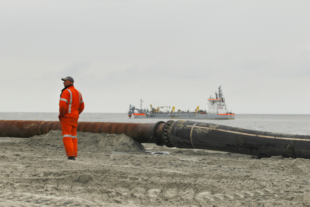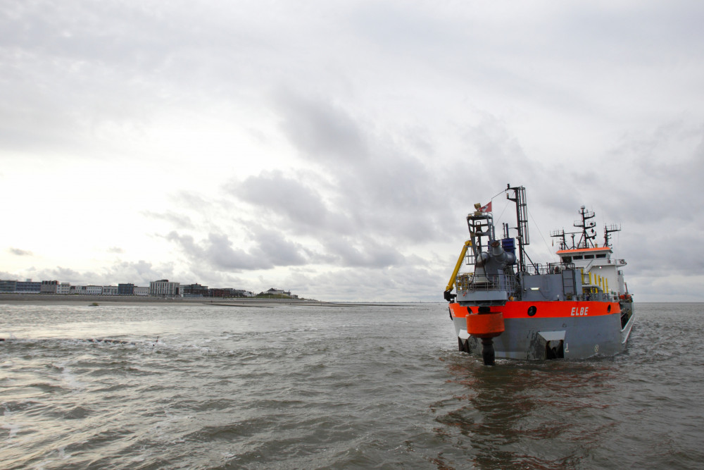 The assignment was to apply 250,000 m3 of sea sand to protect the base of the dike (coastal defense) on the Wadden island of Norderney (D).