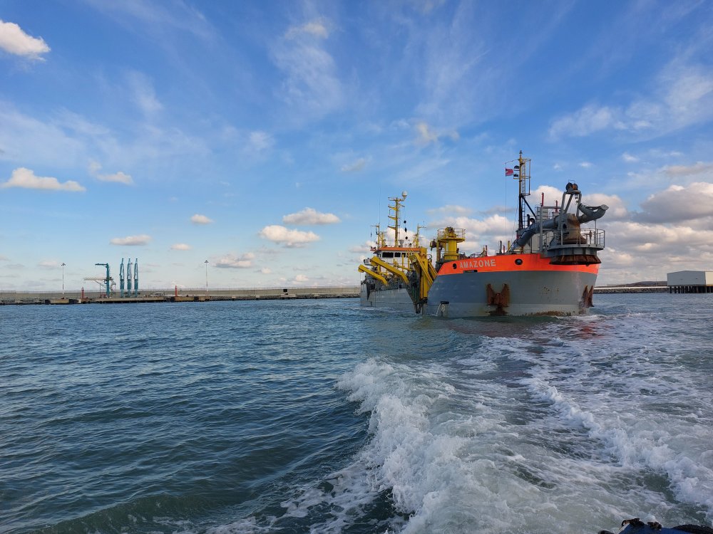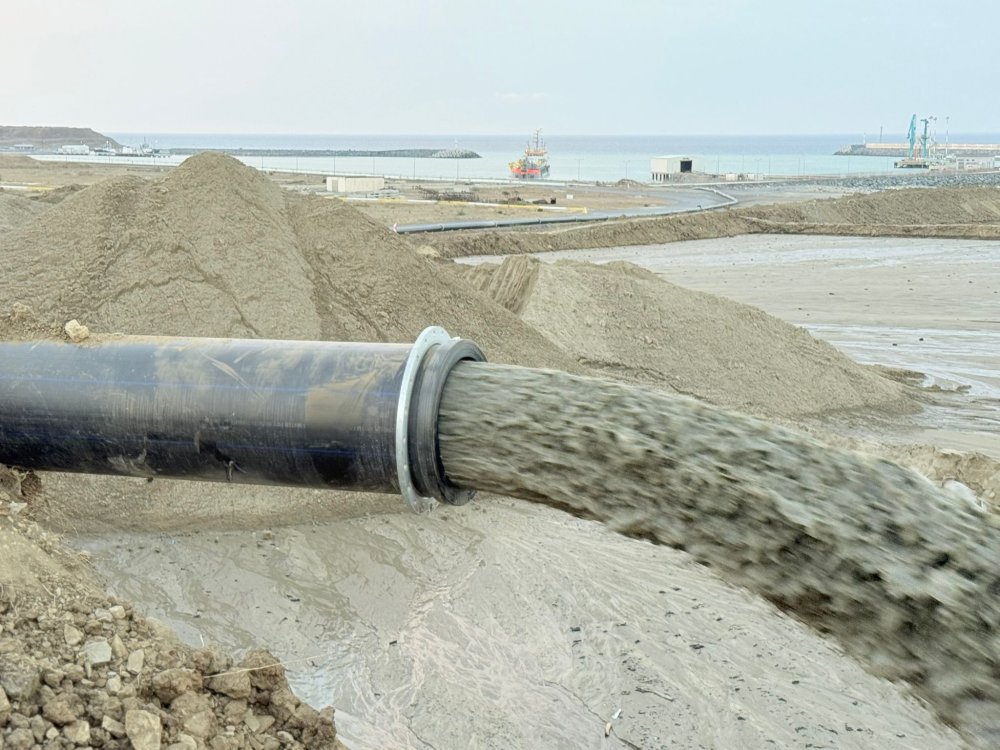 The project involved dredging several areas in the port and the access channel, after which the dredged material was transported via a floating pipeline to a land depot. The material to be processed ranged from clay and stones to sand and silt.