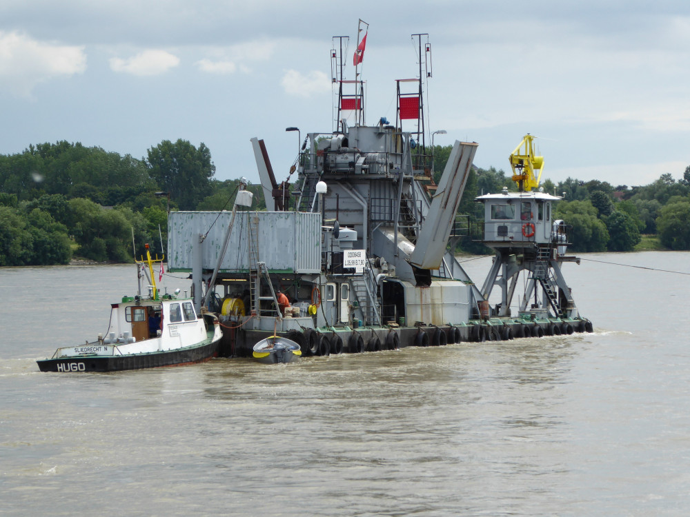 Onderhoudsbagger(molen)werk rivier de Rijn Duisburg - Duitsland