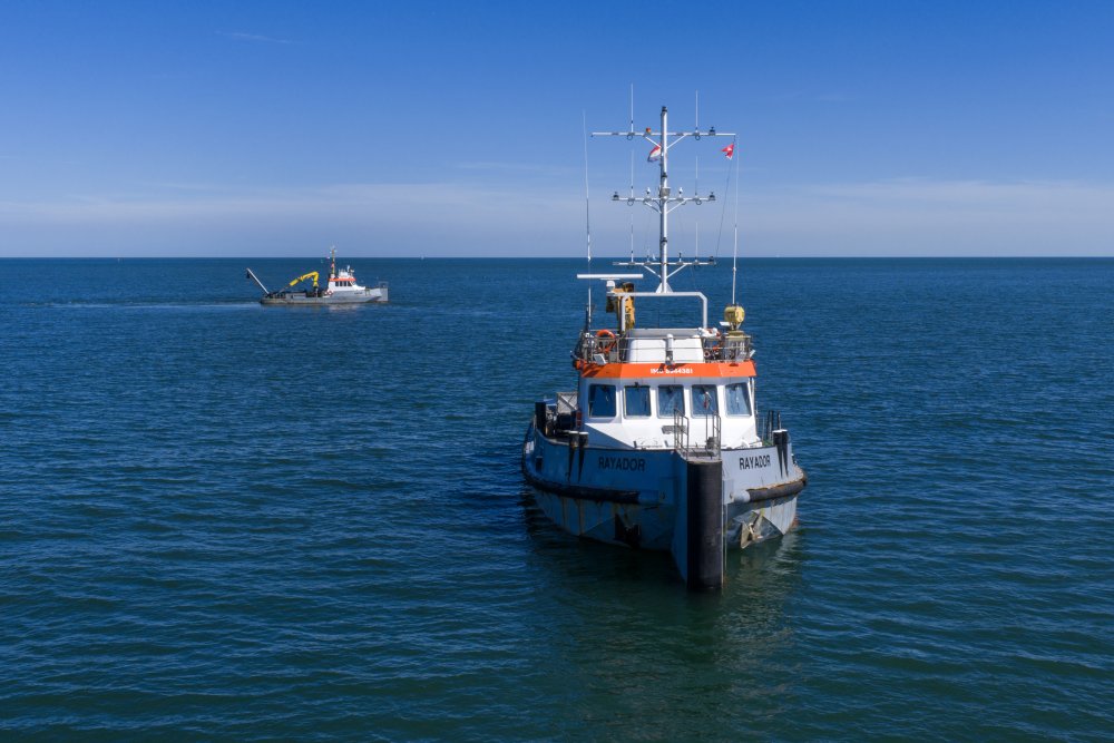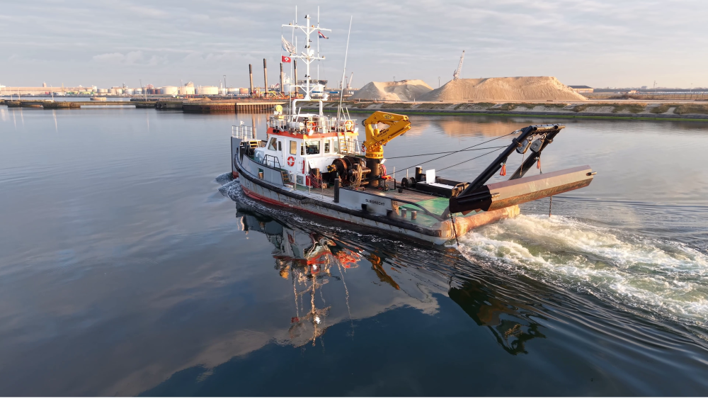 Tevens wordt er gebruik gemaakt van een ploegboot voor het egaliseren van de bodem en het wegtrekken van materiaal langs kades en moeilijk bereikbare plekken.