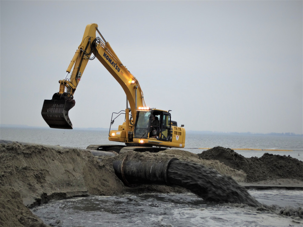 Om het zand op het strand te krijgen zijn de door Baggerbedrijf de Boer B.V. ingehuurde schepen SCALD (Sleephopperzuiger) en Bar-Melus (Kraanschip) aan het werk gegaan nabij het strand. Op het strand zelf zorgde een shovel, bulldozer en een hydraulische kraanmachine ervoor dat het zand goed verspreid werd en daardoor op de juiste hoogte kwam.